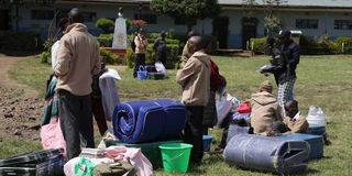 Students accompanied by their parents wait to be admitted at Elburgon Secondary School in Nakuru County on January 13, 2025.