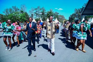 Kenyatta University Vice-Chancellor Prof Paul Wainaina (right) and Nation Media Group Commercial Manager Max Mutua during the university’s cultural week festival at the main campus on December 2, 2025.