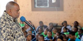 Fuad Ali, Kepssha national chairperson and headteacher at Tom Mboya Comprehensive School in Mombasa, addressing Grade 9 Students on February 4, 2025.