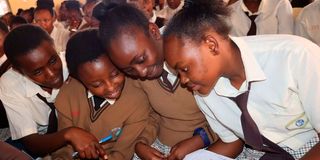 Kiteta Girls Secondary School students read the 'Nation' at the launch of the Newspapers in Education (NiE) programme on July 5, 2025.