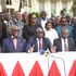 Lecturers march on the streets in Mombasa on September 17, 2025 when their nationwide strike began.
