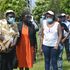 Universities Academic Staff Union (Uasu) national chairperson Muga K'Olale (in green) and Secretary-General Constantine Wasonga (in a red coat) lead members of Uasu Egerton Chapter in singing solidarity song outside the institution on October 21, 2020.