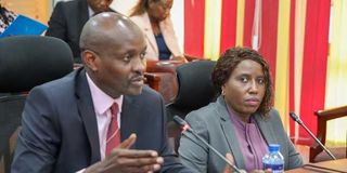 Higher Education Principal Secretary Beatrice Inyangala and Higher Education Loans Board CEO Geoffrey Monari before the Senate Education Committee on March 20, 2025.