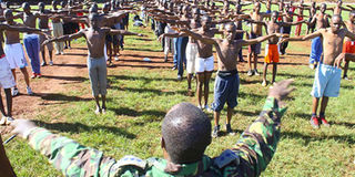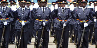 Police recruits during a pass out ceremony at Kiganjo Police Training College, Nyeri. A fresh police recruitment that will be guided by strict regulations gazetted on Friday is set to kick off on Monday across the country. PHOTO | FILE |