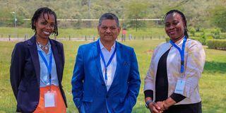 Eng Rosaline Muhia (Left), Young Director (operations), Punet Shamshery (Centre) and Eng Rehema Ocharo during the Sustainable Energy Conference held at Olkaria in Naivasha, Nakuru County, on September 17, 2025.