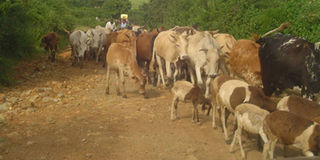 Cattle being driven from rustling-prone area in Kuria to safer zones in this picture taken in 2009. Intelligence reports indicate that cattle stolen in Kenya are converted into meat for sale in the domestic and international market.