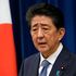 Japanese Prime Minister Shinzo Abe is seen on a large screen during a live press conference in Tokyo on August 28, 2020.