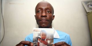 Enock Mudavadi displays a picture of his missing daughter Monicah Makhungu.