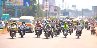 Boda boda riders protest in Kisumu on August 25, 2025. Police linked violence to a bitter rivalry between two groups fighting to control Kisumu’s Bus Park and the boda boda sector.