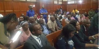 Angry complainants thronged Milimani law courts to follow the proceedings and demand their dues.