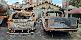 Vehicles reduced to shells at Ol Kalau, Nyandarua County, during the June 25, 2025 protests. Sexual violence rose against female protesters during the demonstrations.