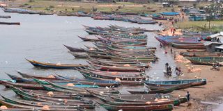 Fishing boats docked at Sindo Gateway Beach in Sindo Town in Suba South in Homa Bay County, on March 11, 2025. Health workers are warning of a rise in HIV infections as US funding freeze shuts down life-saving programmes in Lake Victoria region.