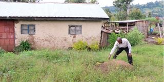 Joseph tends to his wife's grave at his home in Munanda, in Nakuru County.