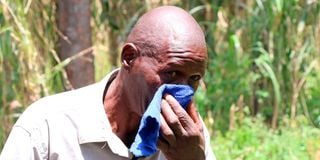 Joseph overwhelmed by emotions during the interview at his home in Munanda, Nakuru County.