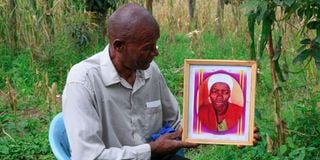 The widower displays a portrait of his late wife, Fidelis Wanjiru at his home. The wife died in January, 2023.