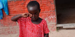 A young girl cries after facing abuse. Beading is one of the harmful cultural practices criminalised under Section 23 of the Children Act.