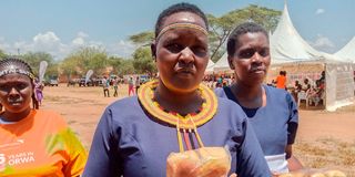 Members of Lokotyo Women Group showcase the cakes they bake, at Orwa village in West Pokot County on September 26, 2024.