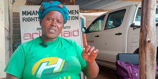 Mary Makau, the organising secretary of Embu-based Mwangaza Women Rights Organisation when she spoke to Nation.Africa on February 26, 2024 at Makima in Mbeere South, in Kenya's Eastern region county of Embu.