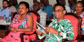 From left: Chief Justice Martha Koome (right) with her deputy Philomena Mwilu during the High Court Leaders Conference held in Mombasa on April 17, 2025. The 2025 Economic Survey shows that the Judiciary has the highest number of women at the decision-making table.
