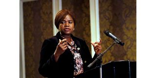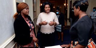 Gender CAS Beatrice Elachi addressing a gathering of women parliamentarians at a Nairobi hotel on November 2, 2021. The meeting that brought together current and aspiring female politicians, aimed at preparing them for the 2022 general election.