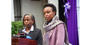 Federation of Women Lawyers-Kenya chairperson Nancy Ikinu and executive director Anne Ireri address journalists at Fida offices in Lavington, Nairobi, on August 3, 2022.