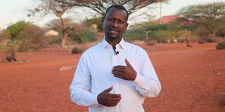 Mohamed Turane addresses a gathering in Hodhan village, Wajir East, on September 12, 2025. He leads efforts against cultural harmful practices in Wajir.