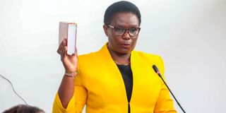 Nominated MP Sabina Chege during a press conference by Jubilee Parliamentary Group members in Nairobi on October 25, 2023.