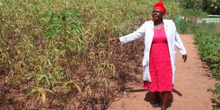 Ruth Okoth at her cassava farm in Kamingusa Village in Rachuonyo North in Homa Bay County on September 30, 2024.