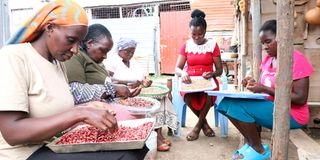 Belakom Organic Farmers members sort seeds from their various cereals in Langalanga, Gilgil Sub-county, Nakuru County.