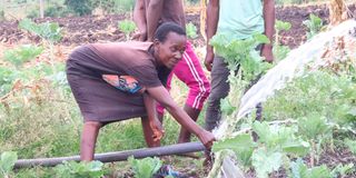 Rose Amenya irrigates her farm in Wahambla village, Homa Bay, on August 8, 2025.