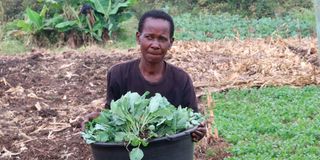 Rose Amenya harvests vegetables on her farm in Wahambla village, Homa Bay, on August 8, 2025.