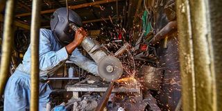 Lorna Nyaloya, 25, works at a welding bay in Utawala, Nairobi.
