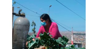 Ms Tuamana tends to her vegetable patch in Cerro Papa, Lima.