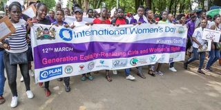 Women march during a procession to mark International Women's Day in Kisumu on March 12, 2020. Kenya's constitutional promise to women remains unfinished.