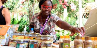 Ms Anzazi Kiti displays her products during Pop up Expo Market held on March 6, 2021 at Zen Garden, Nairobi to empower female entrepreneurs in showcasing their talents. Kenya National Bureau of Statistics shows only about 30 per cent of small and medium enterprises are owned by women.