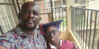 Hawi Afifu Amani, 13, with his father, Chryspin Afifu Onkoba, at their home during the interview on Friday last week.