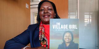 Mary Wamae Wangari, author of 'The Village Girl' holds the book during an interview at Nation Centre in Nairobi, on July 22, 2024.