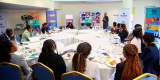 Nation Media Group Chief Corporate Affairs, Marketing and Partnerships Officer, Monicah Waceke Ndung’u, during her presentation at the Nation Media Foundation and FP2030 Health Roundtable at Movenpick Hotel, Nairobi, on August 20, 2025.