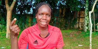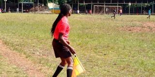 Neddy Chepkurui, 27, a primary school teacher at Kings Hill Academy in Baringo North officiates a match at ASK showground in Kabarnet on August 24, 2025.