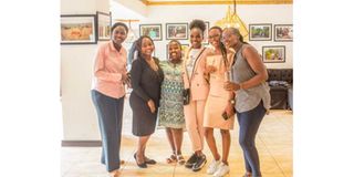 From left: Ms Leonida Odongo, Mary Muthoni, Ms Winnie Cheche, Ms Sandra Ruong'o, Ms Claire Nasike and Ms Fransisca Kasuku during Climate Heroines exhibition in Westlands, Nairobi, on March 25, 2022.