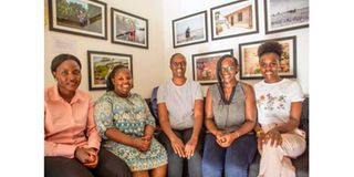 From left: Ms Leonida Odongo, Ms Winnie Cheche, Ms Rosemary Odinga, Ms Fransisca Kasuku and Ms Sandra Ruong'o during Climate Heroines exhibition in Westlands, Nairobi, on March 25, 2022.
