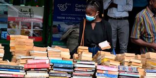 A book lover selects novels on Tom Mboya Street in Nairobi.