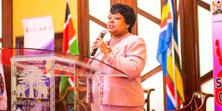 Secretary to the Cabinet Mercy Wanjau during the National Gender Sector Working Group meeting at Safari Park Hotel in Nairobi on January 27, 2025.