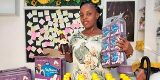 Monica Marura, the Eco Dada executive director, displays branded honey and sanitary pads in Lamu on February 4, 2026.