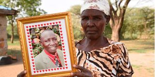 Kobilo Chemjor, whose husband Wilson Chemjor, former Assistant Chief for Loruk-Sub-Location in Baringo County was killed by bandits, shows her husband’s photo during an interview on July 30, 2021.