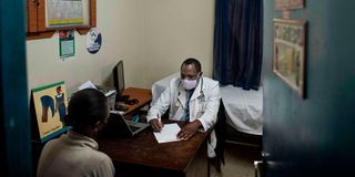 A doctor specialising in reproductive health attends to a patient at his clinic in Nairobi's Kayole estate. The clinc provides services to victims of sexual violence.