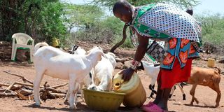 Jemimah Ng'otiek waters her goats in Kajiado.