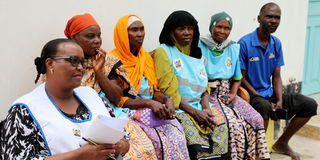 Community health promoters at a meeting in Kwale County. They discuss their future following the withdrawal of funding from the US.