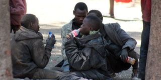 Street boys at Grogan along Nairobi River in 2019.The street children are among those who make it difficult for women to navigate their way in Nairobi's CBD.
