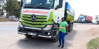 Nelly Biwott, a long distance driver, all set for her journey to Tororo, Uganda. She has been driving trucks for the past six years.
